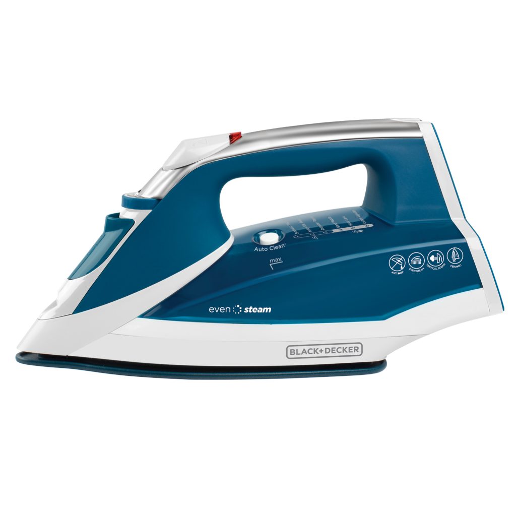 La marca #1 en Planchas BLACK+DECKER, está acelerando el cuidado de la ropa con la plancha de vapor avanzado de EvenSteam™. El diseño de suela CeramicGlide™ de EVEN STEAM está diseñada para proveer un flujo de vapor más uniforme desde el talón de descanso hasta la punta, permitiéndole dominar las arrugas rápidamente en cualquier área de su prenda. La tecnología SmartSteam™ combina controles de vapor y temperatura en una sola perilla para el uso fácil. Además, esta plancha ofrece potente emisión de vapor para agresivamente sacar las arrugas y puede incluso utilizarse verticalmente para retocar rápidamente la ropa en la percha.