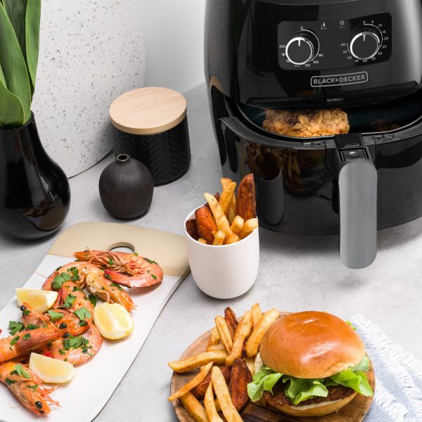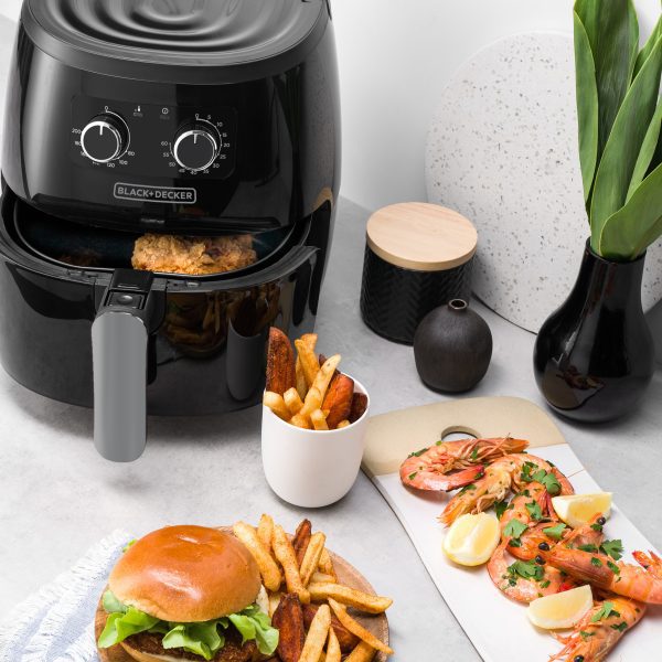 Cocina sin culpa y más rápido con La Freidora de Aire Saludable de BLACK+DECKER con capacidad grande de 5 litros perfecta para cocinar múltiples porciones en poco tiempo. Con esta revolucionaria manera de cocinar, puedes disfrutar deliciosos alimentos fritos sin grasa y con el mismo sabor de manera rápida, esta freidora de aire cocina los alimentos 70% más rápido, para que disfrutes tus platillos en minutos. Cuenta con una cesta removible con superficie antiadherente para que sea muy fácil la limpieza.
