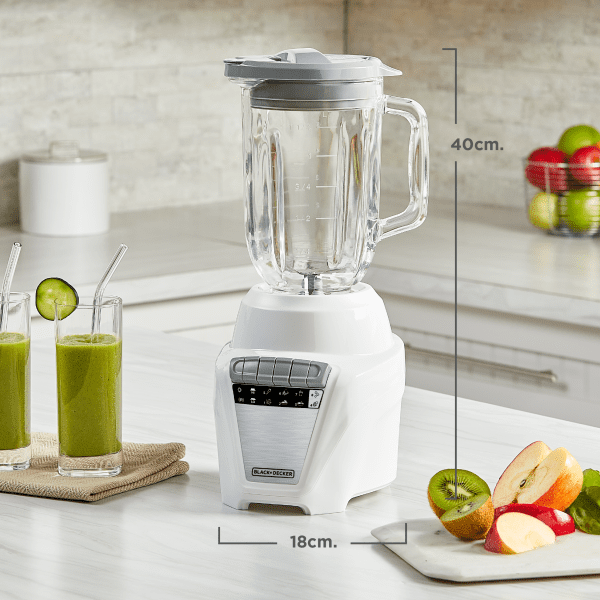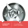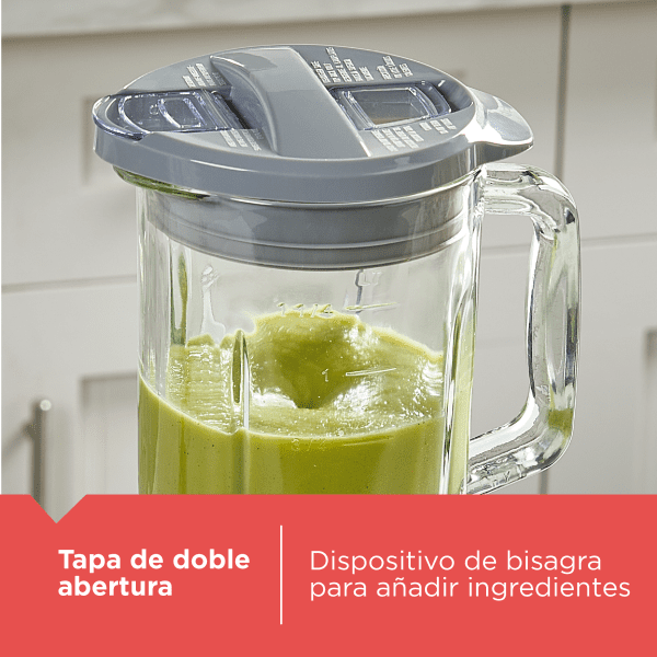 . La jarra de vidrio ergonómica de 1.25 L incluye una tapa de doble apertura y 4 cuchillas de acero inoxidable removibles para una fácil limpieza.