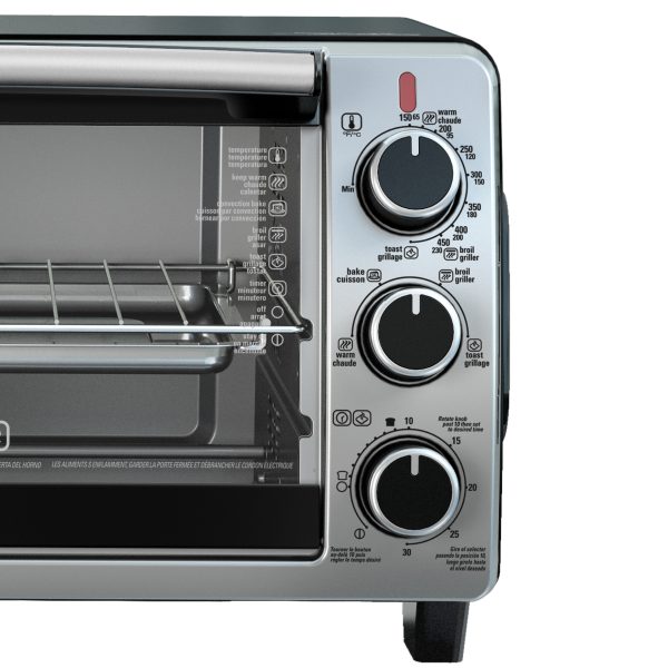 El horno de seis rebanadas de pan BLACK+DECKER tiene tecnología de convección que circula aire caliente para cocinar pizzas y congelados favoritos por mínimo tiempo. El interior está diseñado para el enfoque hacia la comida rápida e incluso cocinar. Las funciones de cocción son hornear, asar, tostar y mantener caliente. Tiene una capacidad para una pizza de 9″ o seis rebanadas de pan.