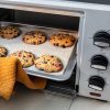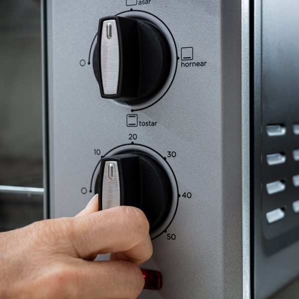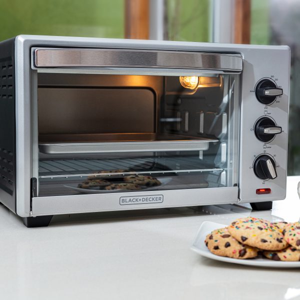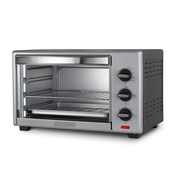 El horno tostador de 30 L de BLACK+DECKER® de 1750 watts, es práctico a la hora de cocinar ya que cuenta con 3 funciones. En su amplio interior puedes cocinar fácilmente una pizza de 30.5 cm (12”) o hasta acomodar seis rebanadas de pan. Además permite personalizar la temperatura del reloj automático y seleccionar la función de tostar, hornear o asar de acuerdo a lo que vaya a cocinar. El horno incluye una bandeja para hornear y otra estilo parrilla.