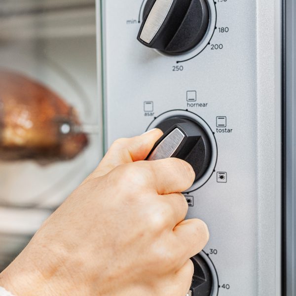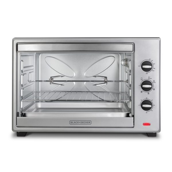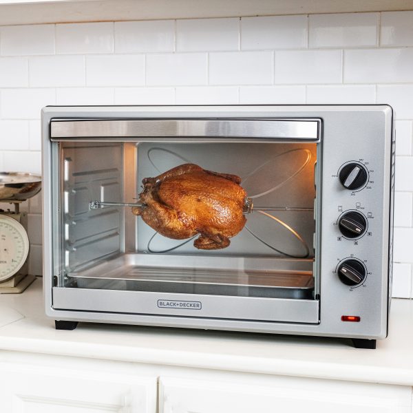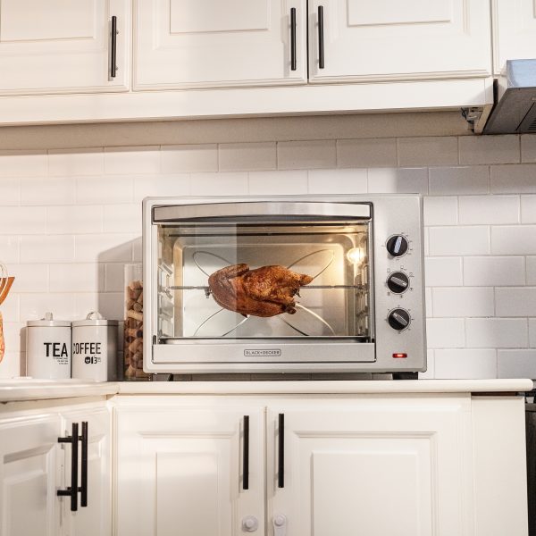 El horno de convección de 67 L de BLACK+DECKER® de 2400 watts, brinda mayor practicidad a la hora de cocinar. En su amplio interior puedes cocinar fácilmente una pizza de 30.5 cm (12”), acomodar seis rebanadas de pan o hasta tostar rotisserie. Cuenta con selector de temperatura, reloj automático hasta 60 minutos y selectior de función para que escojas entre hornear, tostar, asar, asar rotisserie, hornear rotisserie o tostar rotisserie. El horno incluye una bandeja para hornear y otra estilo parrilla.