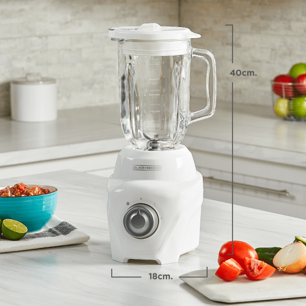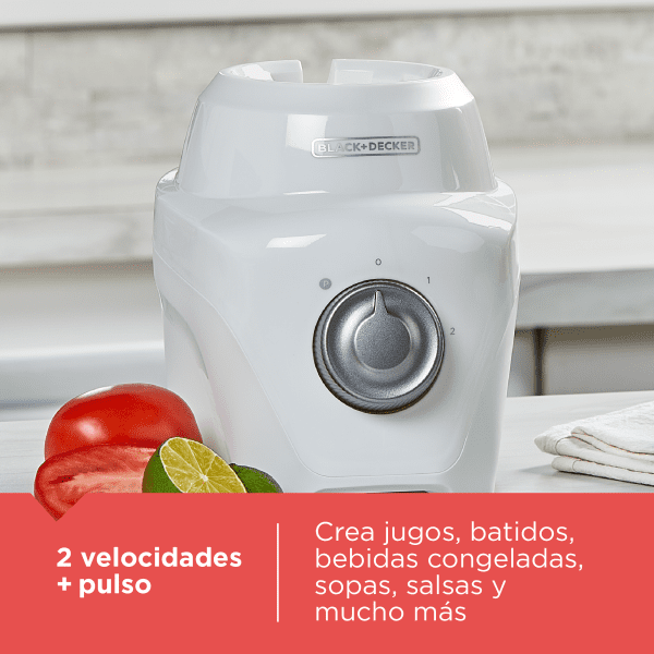 La licuadora Ice Crush 2 veces más duradera* con 700 watts de potencia* mezcla unos deliciosos jugos, batidos, bebidas congeladas, sopas, salsas y mucho más. Tiene 2 velocidades + pulso para la textura perfecta. La jarra de vidrio ergonómica de 1.25 L incluye una tapa de doble apertura y 4 cuchillas de acero inoxidable removibles para una fácil limpieza.