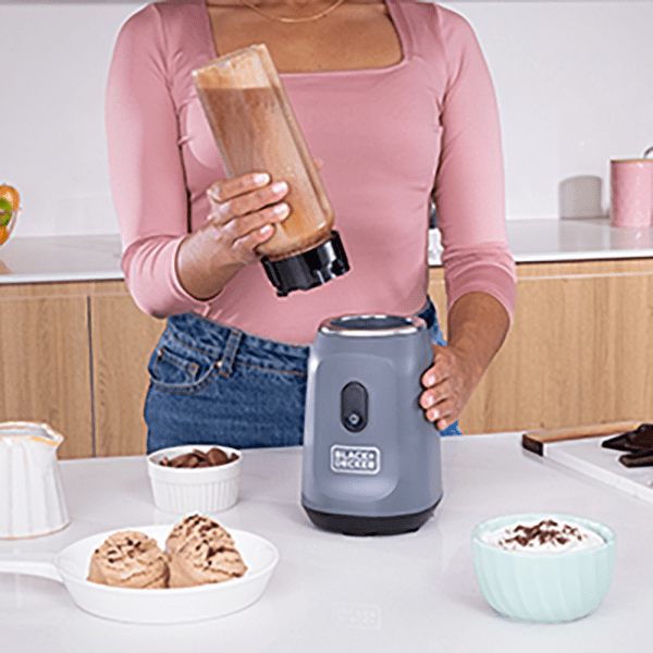 La licuadora personal Ice Crush de Black+Decker™ te ofrece un potente rendimiento con sus 300 watts* té potencia para triturar y su cuchilla de acero inoxidable. Licua manos libres usando el botón de encendido, fácil de llevar contigo con su tapa a prueba de derrames. Prepara tu bebida personal en el vaso de 600 ml de Tritán™. El perfecto licuado porción personal, fácil de utilizar.