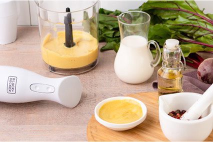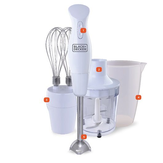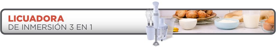 La licuadora de inmersión 3-en-1 de BLACK+DECKER es lo último en herramientas universales de cocina. La base del motor de 500 watts controla cada accesorio—solo gírelo en su lugar y presione el botón de funcionamiento para operarlo fácilmente.