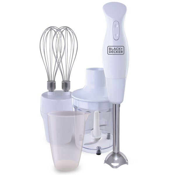 La licuadora de inmersión 3-en-1 de BLACK+DECKER es lo último en herramientas universales de cocina. La base del motor de 500 watts controla cada accesorio—solo gírelo en su lugar y presione el botón de funcionamiento para operarlo fácilmente.