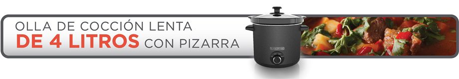 Personalice sus comidas favoritas de cocción lenta con la Olla de Cocción con Pizarra de 4 Cuartos de BLACK+DECKER. El exterior es una superficie de pizarra que le permite ser creativo—clasifíquelo para comidas de olla a la fortuna, escriba las recetas para facilitar la preparación o dibuje en la pizarra para animar su cocina. ¡Todo depende usted! La olla de gres de 4 cuartos es perfecta para asados, sopas, chili y mucho más, solo coloque los ingredientes en la olla de gres y deje que el calor constante haga su trabajo. Tres ajustes de temperatura le brindan opciones para encontrar la mejor temperatura para su receta y su horario—baja por 8-9 horas de cocción, alta para 3-4 horas y tibia para mantener los alimentos a la temperatura ideal para servir. Además, la limpieza se facilita con la olla de gres y la tapa de vidrio templado aptas para lavavajillas.
