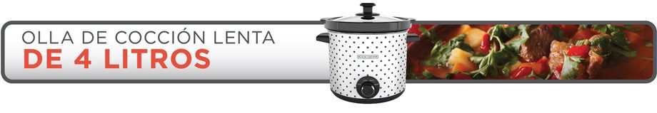 Compruebe lo fácil que puede ser preparar comidas deliciosas con la Olla de Cocción Lenta de 4 Cuartos de BLACK+DECKER. Para asados, sopas, chili y mucho más, solo coloque los ingredientes en la olla de gres y deje que el calor constante haga su trabajo. Tres ajustes de temperatura le brindan opciones para encontrar la mejor temperatura para su receta y su horario—baja por 8-9 horas de cocción, alta para 3-4 horas y tibia para mantener los alimentos a la temperatura ideal de servir. Además, la limpieza se facilita con la olla de gres y la tapa de vidrio templado aptas para lavavajillas.