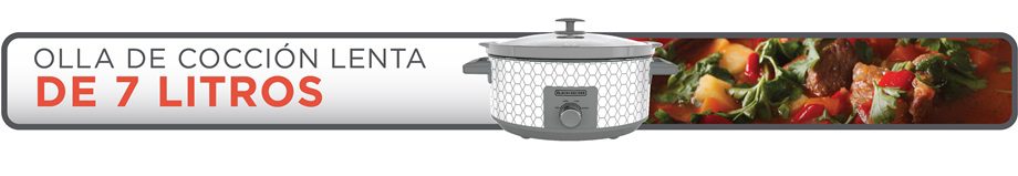 Compruebe lo fácil que puede ser preparar comidas deliciosas con la Olla de Cocción Lenta de 7 Cuartos de BLACK+DECKER. Para asados, sopas, chili y mucho más, solo coloque los ingredientes en la olla de gres y deje que el calor constante haga su trabajo. Tres ajustes de temperatura le brindan opciones para encontrar la mejor temperatura adecuada para su receta y su horario—baja por 8-9 horas de cocción, alta para 3-4 horas y tibia para mantener los alimentos a la temperatura ideal para servir. Además, la limpieza se facilita con la olla de gres y la tapa de vidrio templado aptas para lavavajillas.