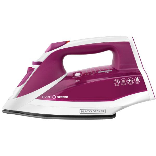 La marca #1 en Planchas BLACK+DECKER, está acelerando el cuidado de la ropa con la plancha de vapor avanzado de EvenSteam™. El diseño de suela TrueGlide™ de EVEN STEAM está diseñada para proveer un flujo de vapor más uniforme desde el talón de descanso hasta la punta, permitiéndole dominar las arrugas rápidamente en cualquier área de su prenda. La tecnología SmartSteam™ combina controles de vapor y temperatura en una sola perilla para el uso fácil. Además, esta plancha ofrece potente emisión de vapor para agresivamente sacar las arrugas y puede incluso utilizarse verticalmente para retocar rápidamente la ropa en la percha.
