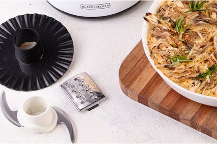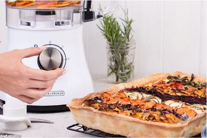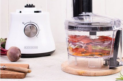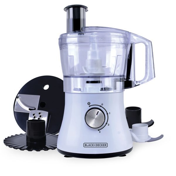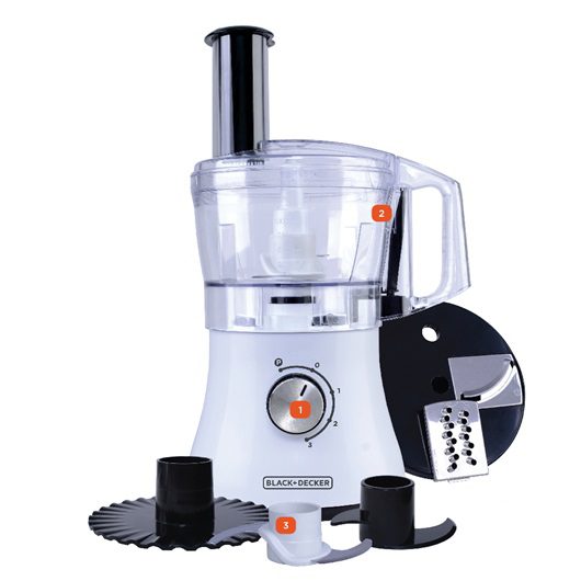 El Procesador de Alimentos de 5 Tazas de BLACK+DECKER es un electrodoméstico útil para procesar los alimentos. Le brinda la flexibilidad de rebanar, picar, desmenuzar, rallar o hacer puré, así necesite mucha o poca cantidad. Las cuchillas para picar de acero inoxidable y el potente motor de 750 watts trabajan en combinación para procesar los alimentos rápidamente en el recipiente de procesamiento de 5 tazas.