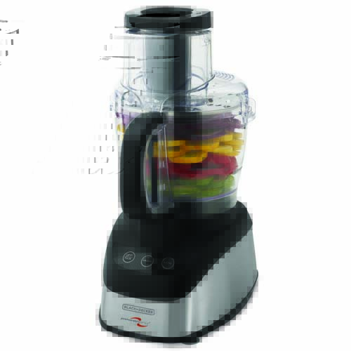 ¿Qué tan potente es el Procesador de Alimentos de Boca Ancha Power Pro de BLACK+DECKER? Es tan potente que tuvimos que diseñar pies de succión reforzados para mantenerlo en su lugar mientras rebana, pica, desmenuza, ralla y hace puré de manzanas enteras, papas, pepinos, cebollas, bloques de queso u otros alimentos enteros con facilidad. Con un motor feroz de 500 watts y toneladas de torsión trabajando en conjunto bajo su exterior elegante y estable, esta es una pieza de maquinaria resistente que desempeña de una forma tan excelente como luce.