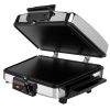 Cocinar el desayuno y almuerzo para su familia es conveniente con el diseño 3 en 1. Comience preparando waffles, luego invierta las placas de cocción y doble hacia atrás la parte superior con bisagra para abrirla en posición plana con 2 placas de plancha que le permiten cocinar huevos y tocino. Cocinar es fácil con las canales de grasa que drenan los residuo de grasa de los alimentos. Para el almuerzo, prepare sándwiches tostados para satisfacer cualquier apetito.