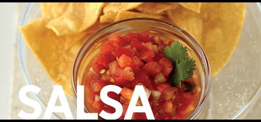Pulse 2 a 3 veces hasta obtener una consistencia de trocitos. Trucos del cocinero: Existen posibilidades infinitas cuando se trata de salsa. Pruébela sobre papas horneadas, revuelva la salsa en las verduras de ensaladas para crear aderezos saludables, agregue salsa a huevos revueltos o rellene pechugas de pollo deshuesadas con la salsa antes de cocinarlas. Mantenga la salsa fresca a mano para adiciones innovadoras y deliciosas.